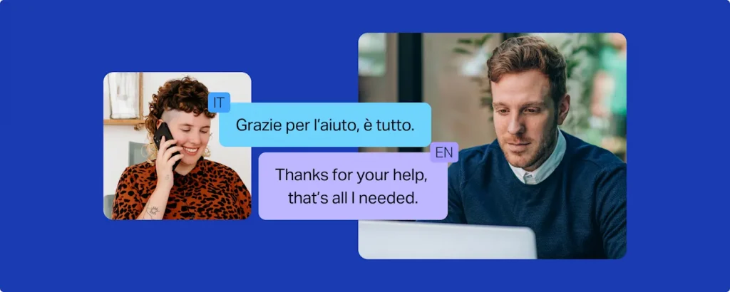 会話の内容を追うことに苦労する代わりに、エージェントは通話内容のリアルタイム文字起こしと即時翻訳を画面上で確認できます。これにより、エージェントは会話に集中したまま対応でき、顧客は理解されていると感じられ、やり取りもスムーズに進みます。