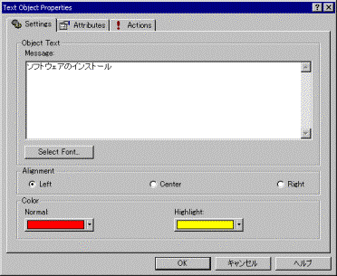 日本語を使用する際の注意点:AutoPlay Media Studio で日本語を表示するには、Arial Unicode MS フォントが必要です。このフォントは Microsoft Office 2000 以上をインストールする際に、[ユニバーサル フォント] を選択することにより使用することができます。